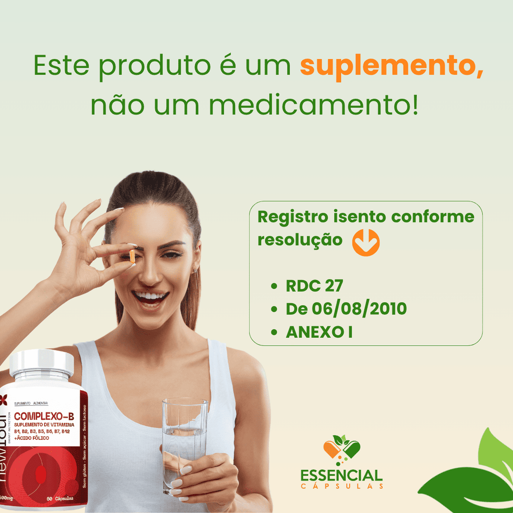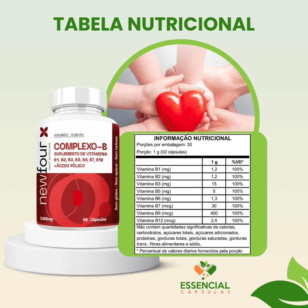 Suplemento com vitaminas do complexo B, essenciais em diversas funções.
