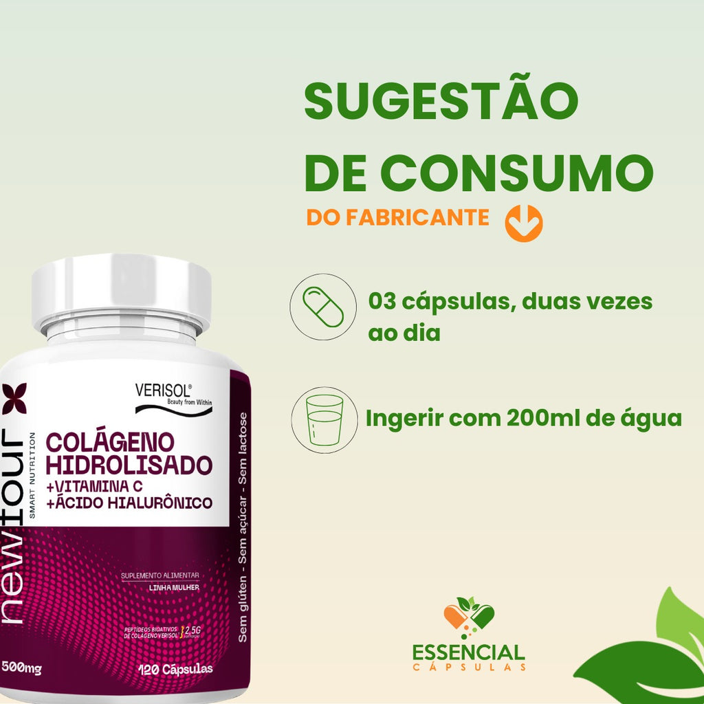 - Colágeno Hidrolisado (Verisol) + Vitamina C + Ácido Hialurônico
