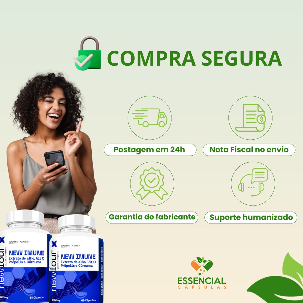 NEW IMUNE - EXTRATO DE ALHO, VITAMINA C, PRÓPOLIS E CÚRCUMA 60 CÁPSULAS
