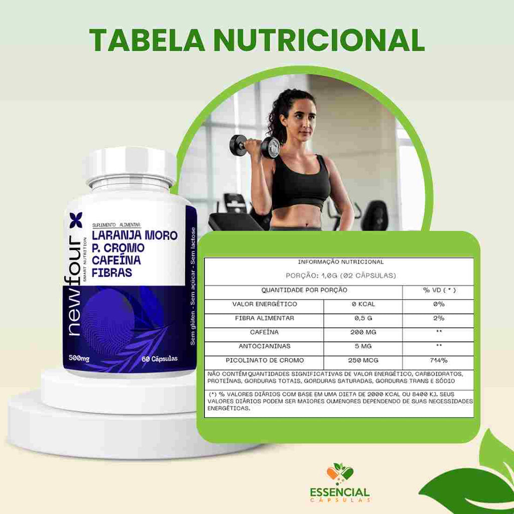 - Laranja Moro + Picolinato Cromo + Cafeína + Fibras 60 Cápsulas