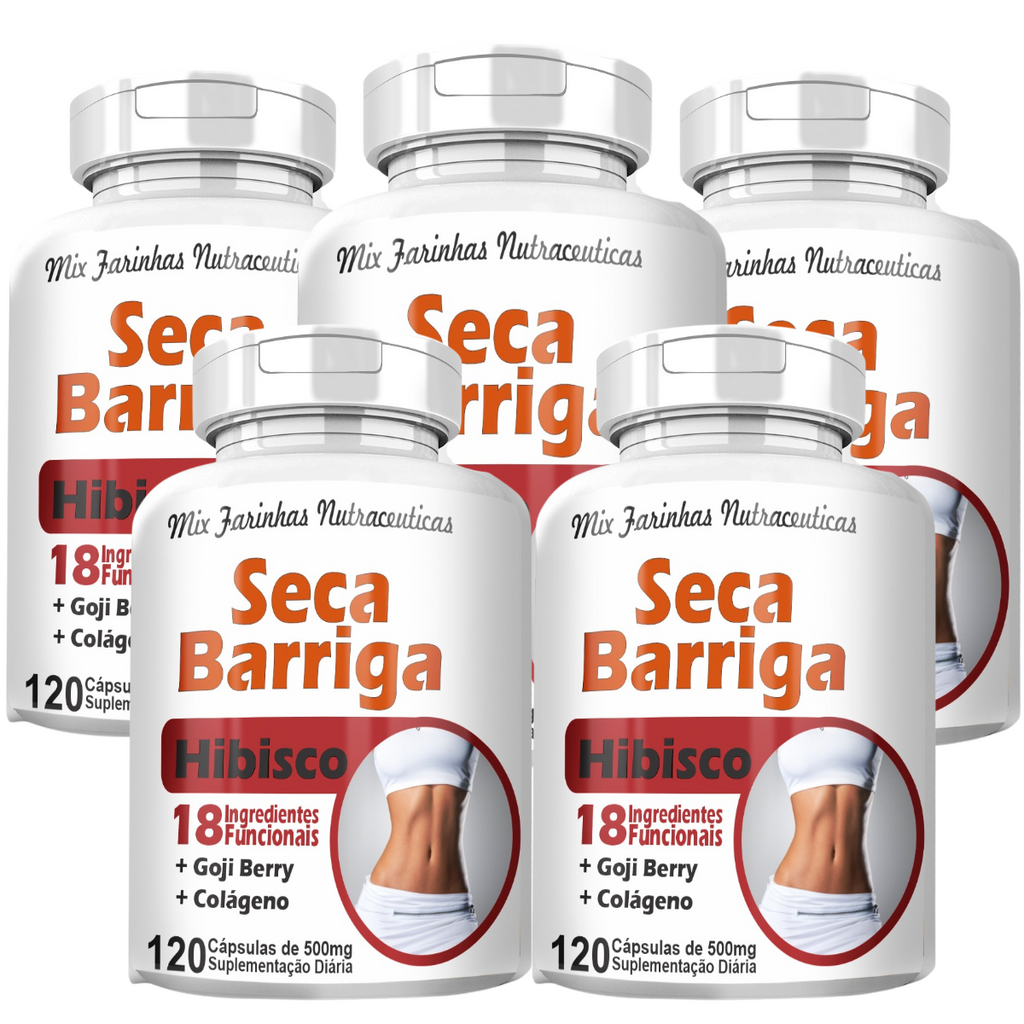 Kit com 5 Potes Seca Barriga Com Hibisco 500mg 120 Cápsulas