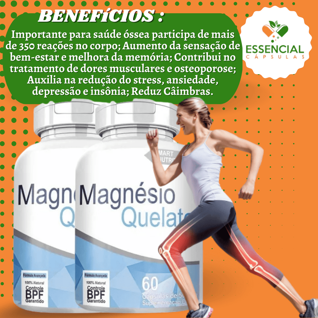 Auxilia na melhora da saúde óssea, pois o magnésio é essencial para a formação e a manutenção dos ossos. Ele ajuda a absorver o cálcio e a fósforo, que são os principais componentes dos ossos.