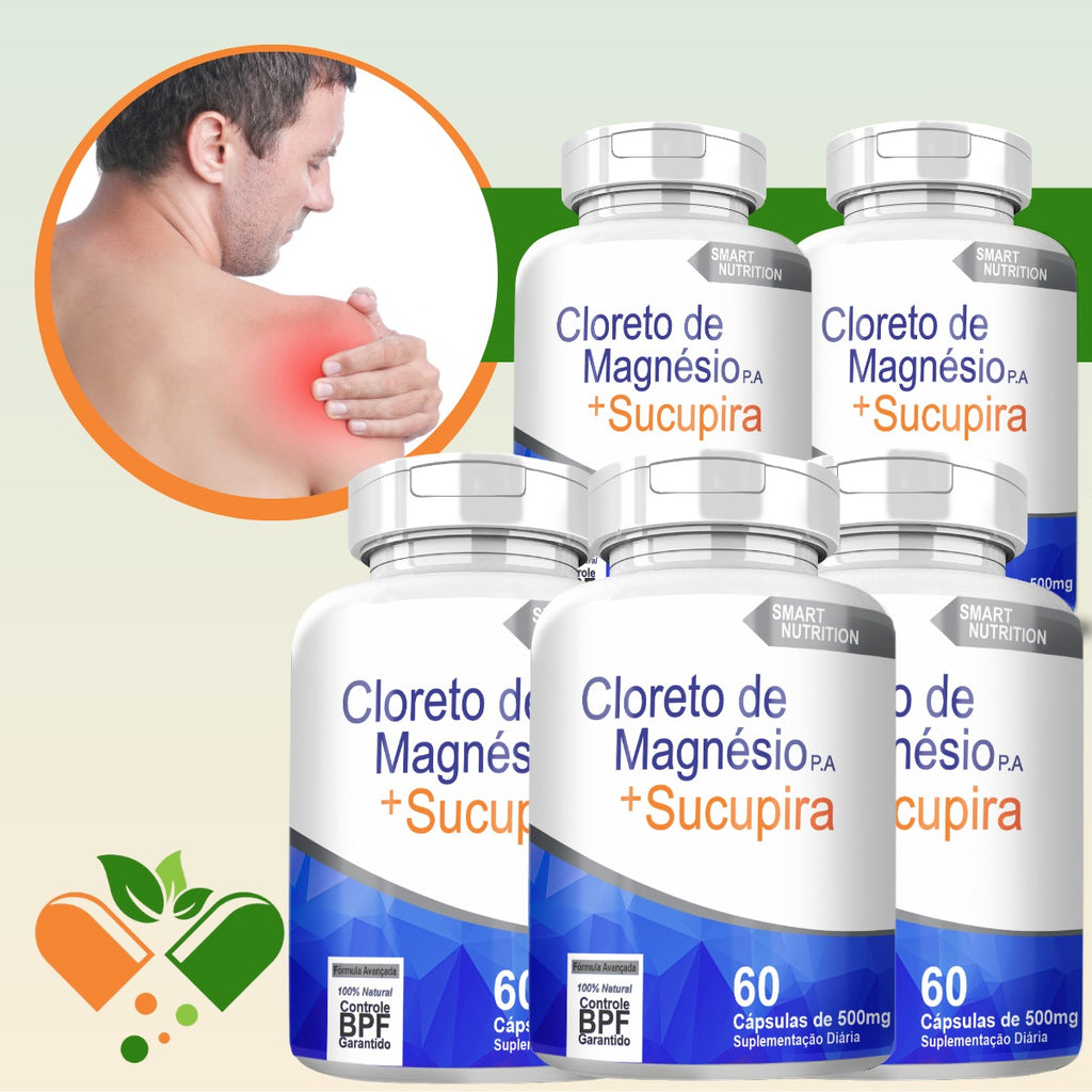CLORETO DE MAGNÉSIO P.A COM SUCUPIRA KIT COM 5 POTES COM TOTAL DE 300 CAPSULAS