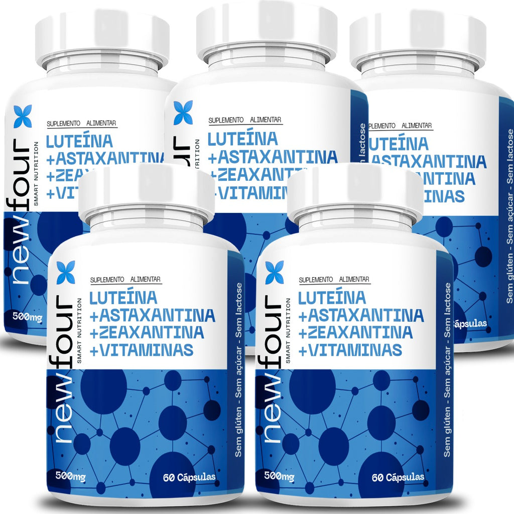 LUTEÍNA + ASTAXANTINA + ZEAXANTINA +VITAMINAS KIT COM 5 POTES COM TOTAL DE 300 CAPSULAS