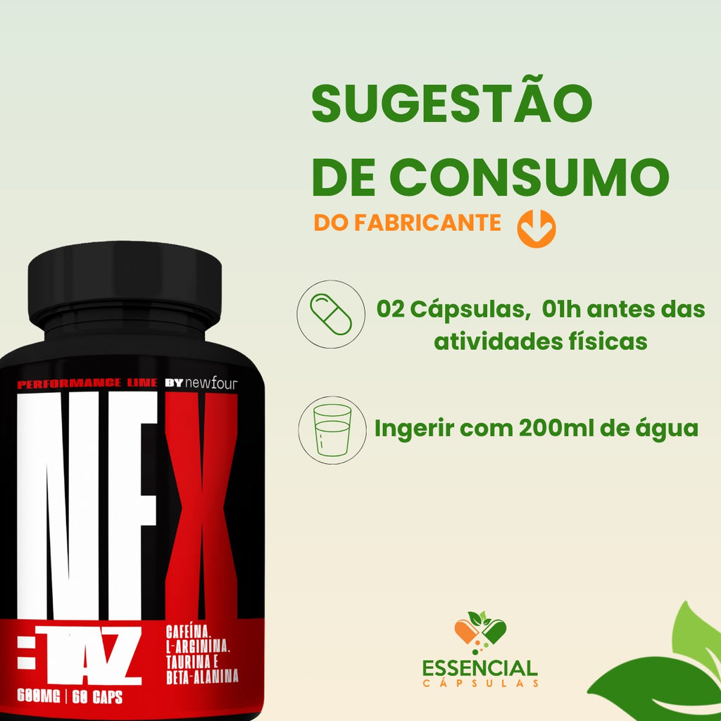 - 02 cápsulas, uma hora antes dos exercícios físicos.
